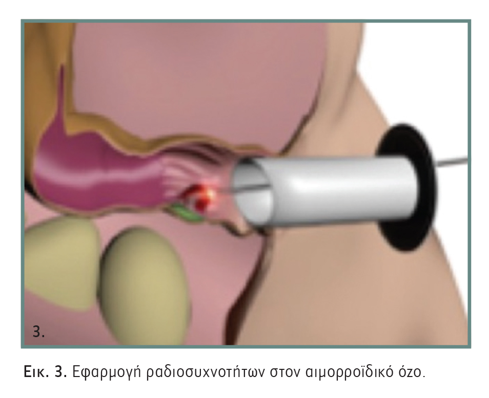 - Αιμορροϊδοπλαστικη με ραδιοσυχνότητες – Μέθοδος RAFAELO, όπου με τη χρήση ειδικών καθετήρων ραδιοσυχνοτήτων επιτυγχάνεται η συρρίκνωση και τελικά η εξαφάνιση των αιμορροΐδων, προστατεύοντας, όμως, τους γύρω ιστούς, καθώς χρησιμοποιούνται χαμηλότερες θερμοκρασίες σε σχέση με τη χρήση του laser. Η μέθοδος είναι απόλυτα ασφαλής, χωρίς μετεγχειρητικές επιπλοκές, ανώδυνη (μέθη ή τοπική αναισθησία) και πραγματοποιείται με παραμονή λίγων ωρών στην κλινική. Ο ασθενής εξέρχεται χωρίς πόνο και επιστρέφει άμεσα στις καθημερινές του δραστηριότητες (Εικόνες 2, 3).