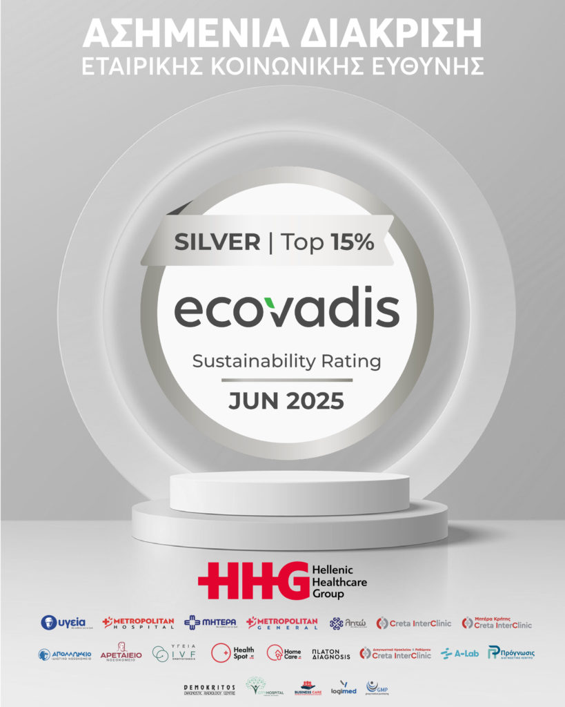 Ο Όμιλος Hellenic Healthcare (HHG) αναγνωρίζεται για τέταρτη συνεχόμενη χρονιά από τον διεθνή οργανισμό αξιολόγησης Εταιρικής Βιωσιμότητας EcoVadis, λαμβάνοντας Ασημένια Διάκριση και καταγράφοντας βελτιωμένη επίδοση, για τη βιώσιμη ανάπτυξη στους τομείς Περιβάλλοντος, Κοινωνίας και Διακυβέρνησης (ESG). Η διάκριση αυτή ενισχύει τη θέση του ως πρότυπο υπεύθυνης και βιώσιμης επιχειρηματικότητας με θετικό κοινωνικό αποτύπωμα.