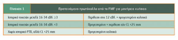 Κυήσεις με ιστορικό πρόωρου τοκετού και βραχύ τράχηλο (<25 mm) στις 16-24 εβδομάδες