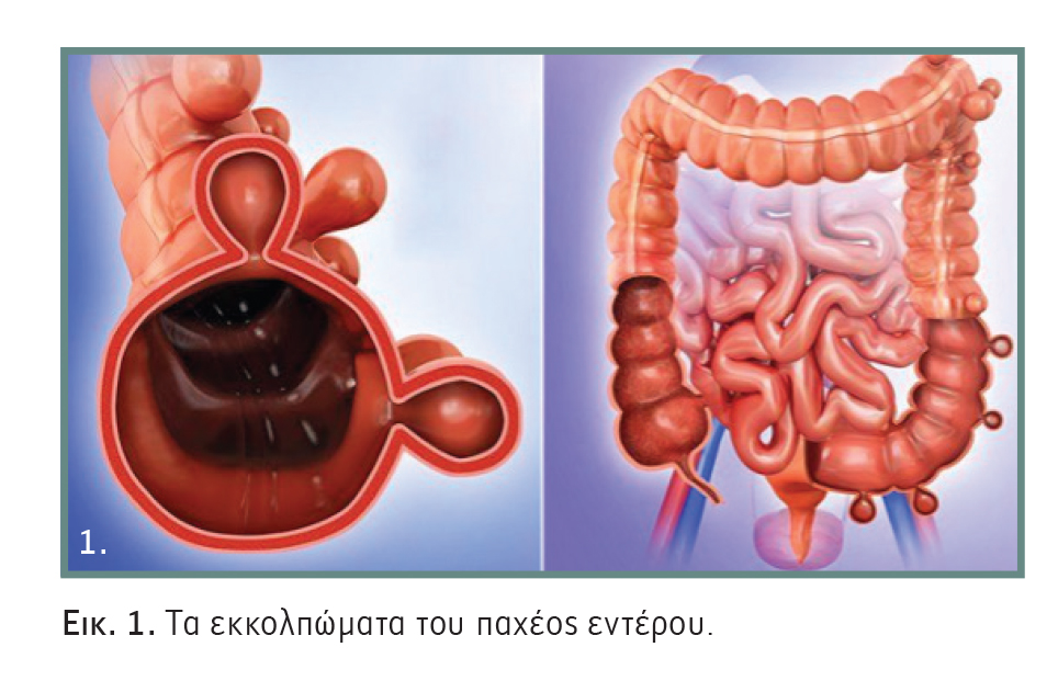 Τα εκκολπώματα του παχέος εντέρου είναι προσεκβολές του βλεννογόνου δια του τοιχώματος του παχέος εντέρου, καλυπτόμενα μόνο από ορογόνο, και για τον λόγο αυτό είναι και εύκολο να διατρηθούν (Εικόνα 1). Είναι νόσος του δυτικού τρόπου ζωής (διατροφή πλούσια σε κόκκινο κρέας, λιπαρά και φτωχή σε ίνες και λαχανικά, καθιστική ζωή, κάπνισμα), αλλά και νόσος των ηλικιωμένων λόγω της προοδευτικής εκφύλισης των ιστών με την ηλικία (αν και τελευταία, βέβαια, παρατηρείται αύξηση του ποσοστού σε νεαρότερες ηλικίες).