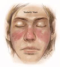 • a rash over parts of your body that are exposed to the sun – a butterfly-shaped rash over your cheeks and the bridge of your nose is especially common