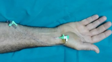 Πολλές φορές, όταν η επέμβαση δεν είναι δυνατό να πραγματοποιηθεί από την κερκιδική αρτηρία, μπορεί να χρησιμοποιηθεί κατά τον ίδιο τρόπο η άλλη αρτηρία του καρπού, η ωλένια αρτηρία.