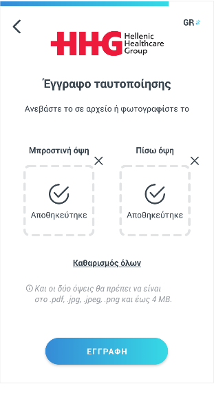 Προσοχή: πρέπει να ανεβάσεις και τις δυο όψεις της ταυτότητας ή του διαβατηρίου σου σε μορφή αρχείου pdf ή jpg ή png έως 4MB