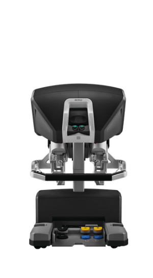 - Την κονσόλα χειρισμού (εικόνα 1), εργονομικά σχεδιασμένη, όπου υπάρχουν τα χειριστήρια, τα πεντάλ ελέγχου και το σύστημα τρισδιάστατης εικόνας μέσω ειδικής οθόνης – διόπτρας. Η κονσόλα συνδέεται με οπτικές ίνες με το κυρίως σώμα.