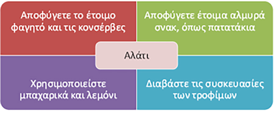 • Φροντίστε τα παιδιά να καταναλώνουν όσο το δυνατό λιγότερο αλάτι.